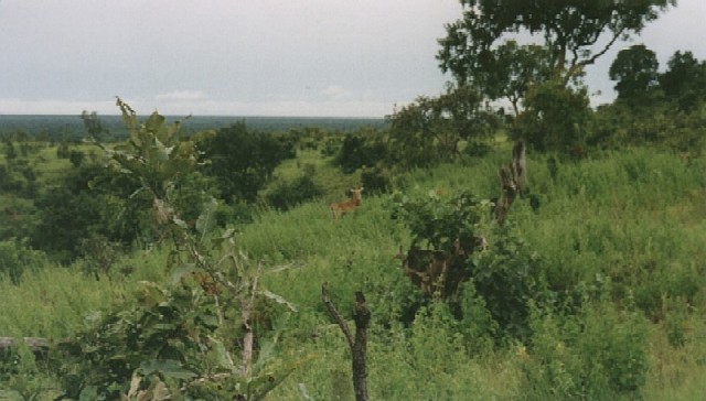 Mole Nationalpark: eine Antilope (der braune Fleck in der Mitte) Mole national park: a antilope (the brown speck in the center)